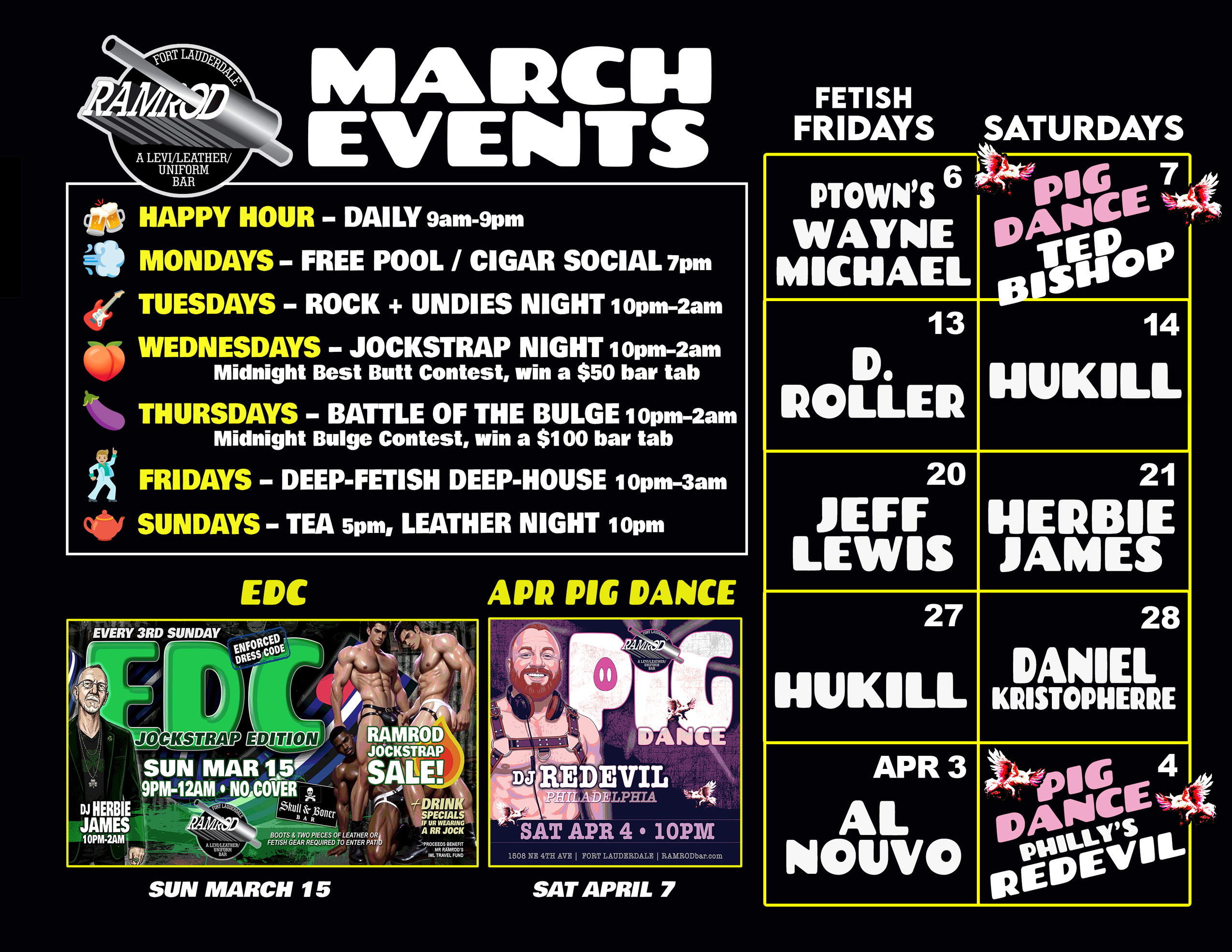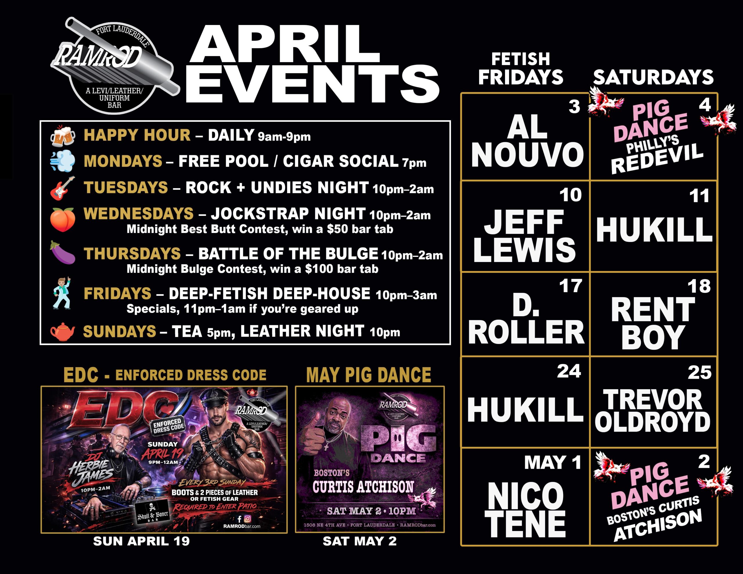 It was one of the first bars to jumpstart the North Fort Lauderdale / Wilton Manors gay district. It’s customers are not all about leather… but Ramrod was voted world’s Best Bar (Leather Category) by GayCities.com. and also the most famous.